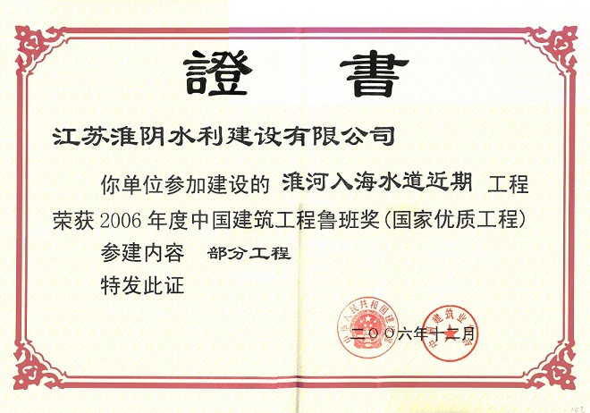 2006年度獲“中國建筑工程魯班獎”;2007年獲“中國水利工程優質(大禹)獎”;2009年獲“新中國成立六十周年百項經典暨精品工程”獎。