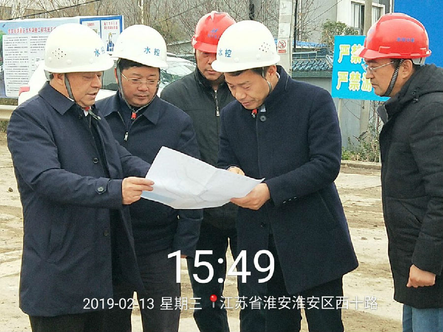 2019年2月13日下午,淮安市水利局局長尤其中一行赴淮安高鐵新區水系調整工程項目督導節后復工工作。尤局長一行在查看了茭陵一站引河改道段、烏沙干渠廣州路以東段、南支河地涵等多處施工現場后,聽取了項目經理李延安關于工程項目施工情況匯報,尤局長對高鐵新區水系調整工程施工建設提出了四點要求:一要主動對接生態文旅區相關部門,盡快解決各種矛盾;二要高度重視工程安全,保證工程質量;三要加快工程進度,確保烏沙干渠在3月中旬具備灌溉條件,茭陵一站引河在汛前具備防洪排澇條件;四要發揚忠誠、干凈、擔當、科學、求實、創新的水利精神,為淮安水利塑造良好形象。