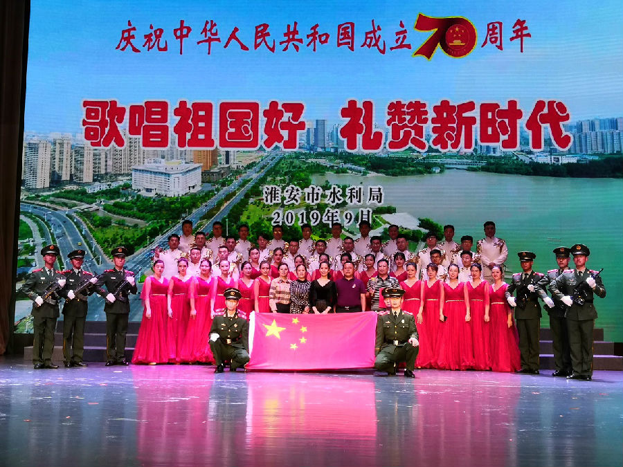 9月22日,江蘇淮陰水利建設有限公司代表隊在全市水利系統慶祝新中國成立70周年“歌唱祖國好·禮贊新時代”合唱比賽中,憑借《我的祖國》和《國家》兩首演唱曲目,獲得了一等獎的好成績。